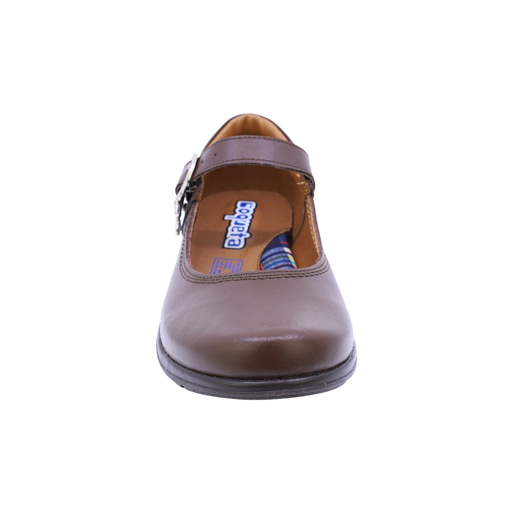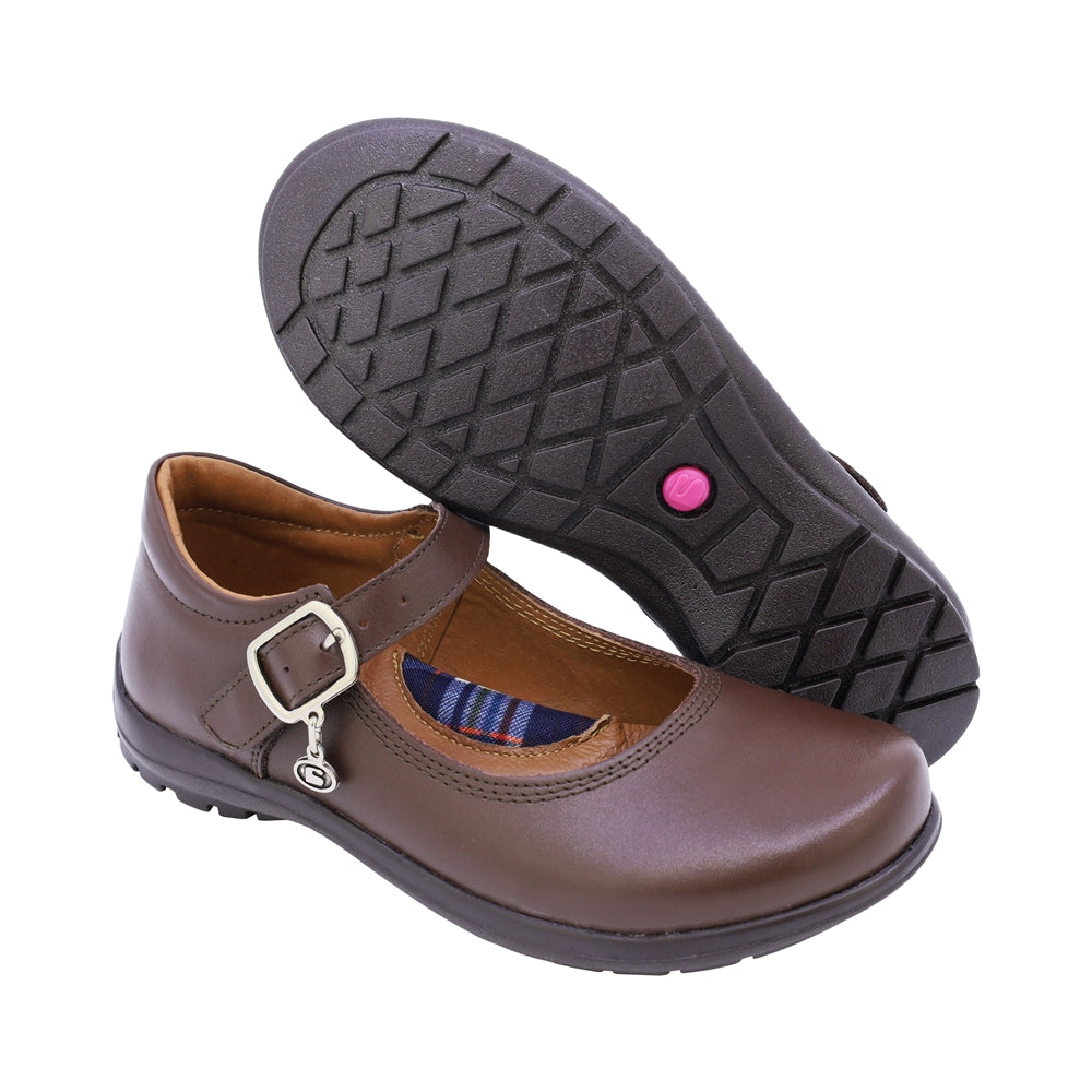 Zapato escolar Coqueta para niña de piel café Danna con hebilla