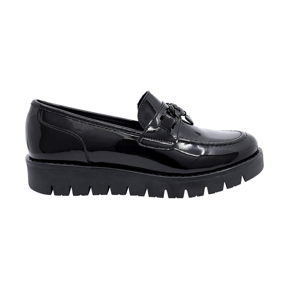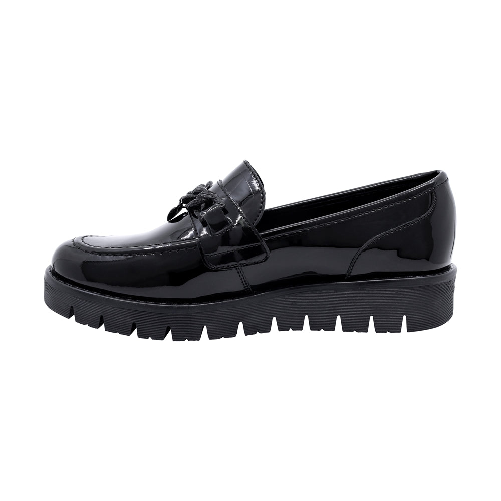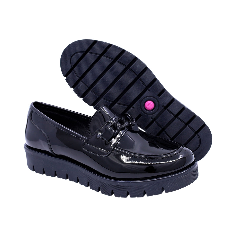 Mocasín escolar Coqueta para niña de charol negro Florence con lazo decorativo