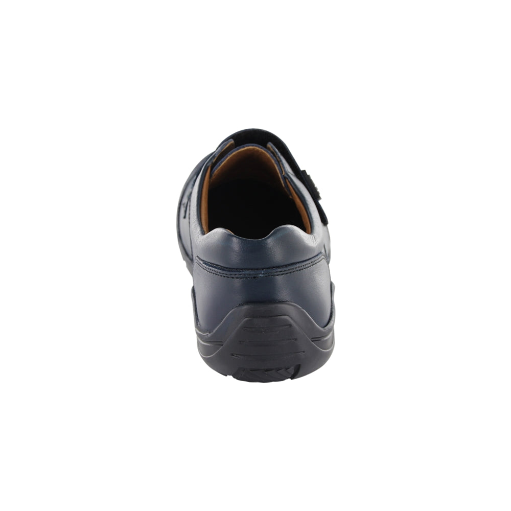 Confort y durabilidad con este zapato escolar Audaz para niño, elaborado en piel azul marino, con refuerzo frontal: anti-raspaduras, su tira de contacto que facilita el ajuste. Ideal para acompañarlo en su rutina diaria.
