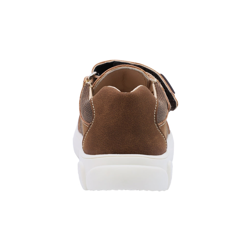 Sandalia Audaz para niño en sintético café con suela deportiva. Ofrece transpirabilidad gracias a sus aberturas laterales, ajuste de tira de contacto y estructura resistente para actividades activas.