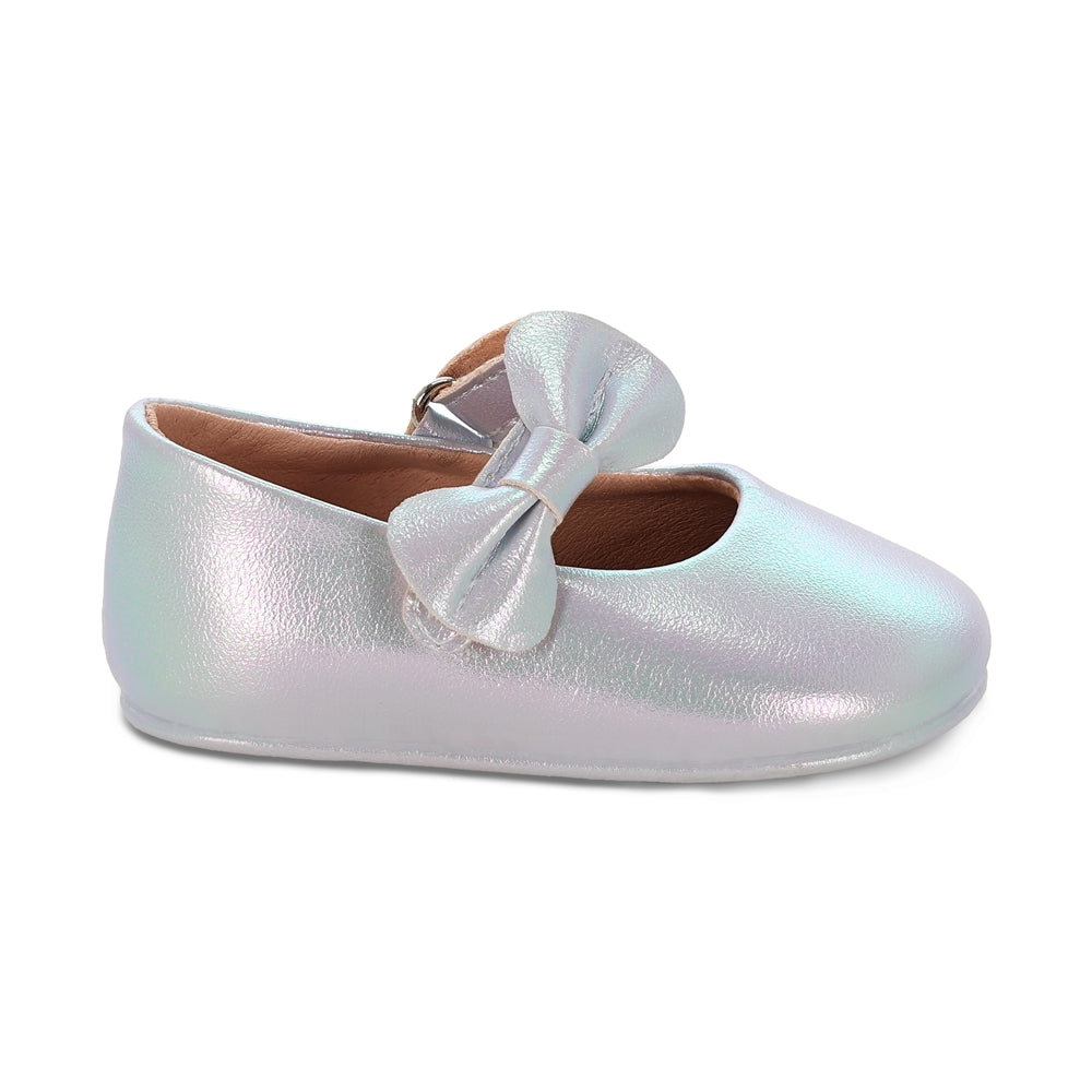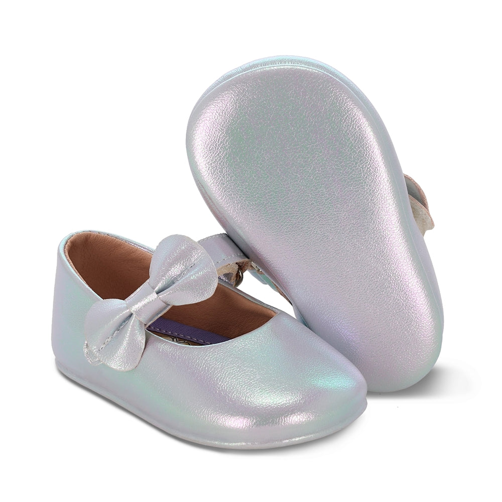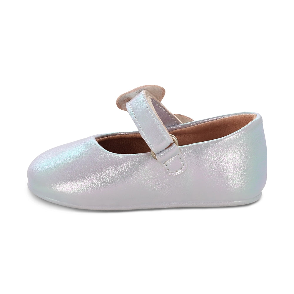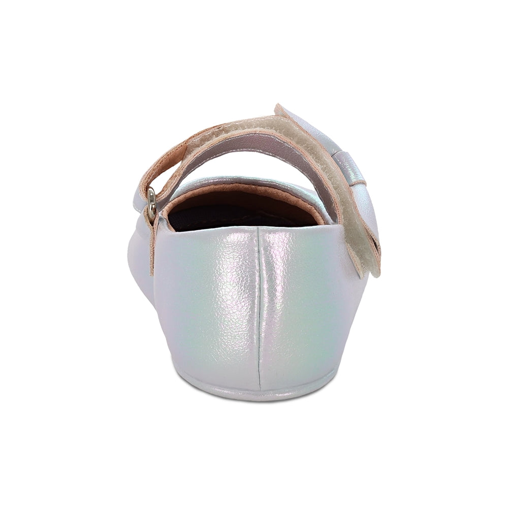 Balerina Coqueta para niña, en perla, fabricada con en sintético de alta calidad. Su ajuste con tira de contacto asegura un calce cómodo y seguro, mientras que su diseño moderno y elegante mantiene a tu pequeña a la moda. Ideal tanto para ocasiones especiales como para un look diario lleno de estilo y confort. La suela flexible ofrece comodidad durante todo el día, convirtiéndola en la elección perfecta para cualquier momento.
