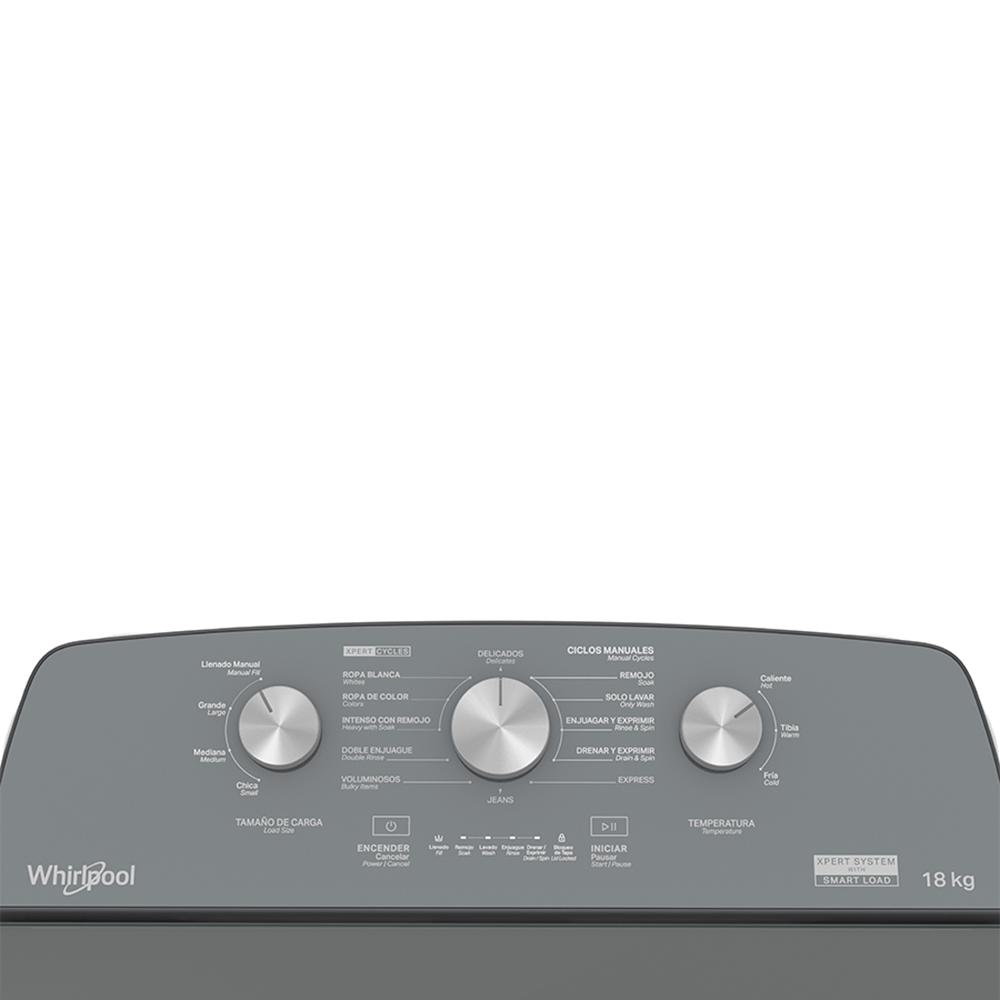 Lavadora de Carga Superior 18kg en color blanco, con panel Chrome Shadow, está equipada con el sistema de lavado Xpert System, reconocido como uno de los mejores sistemas de lavado que remueve las manchas más difíciles en comparación con otros. Esta lavadora moderna ofrece una experiencia excepcional de lavado con diversas características innovadoras. Características Destacadas: Smart Load: Con Smart Load, puedes conocer el nivel de tamaño de tu ropa seca y seleccionar el tamaño correcto de carga (CH, M o G) para un lavado óptimo. Además, incluye la opción de Llenado Manual para mayor control. Agitador Double Action: Esta lavadora con agitador Double Action cuenta con 8 movimientos expertos para una limpieza más profunda y un cuidado delicado de tus prendas. Depósitos automáticos de Suavizante y Blanqueador: Dispone de depósitos automáticos para suavizante y blanqueador, facilitando el proceso de lavado. Variedad de Ciclos: Ofrece 12 ciclos de lavado, incluyendo 3 ciclos Xpert: Ropa de Color, Ropa Blanca y el nuevo ciclo Intenso con Remojo. Otros ciclos disponibles son Voluminosos, Jeans, Express, Delicados, Remojar, Solo Lavar, Enjuagar y Exprimir, y Drenar y Exprimir. Temperaturas de Agua: Esta lavadora moderna ofrece 3 opciones de temperatura de agua: Fría, Tibia y Caliente, para adaptarse a diferentes tipos de carga y necesidades de lavado. Funcionalidad y Diseño: Incluye Bloqueo de tapa para mayor seguridad, tapa de cristal templado que ofrece un diseño único y moderno en tu hogar, y una luz LED indicadora de la etapa del ciclo para mayor comodidad durante el lavado. Garantía Extendida: Además, cuenta con una garantía de 10 años en el motor para una mayor tranquilidad. *En su clase, con las 5 manchas más comunes basado en el procedimiento estándar NMX (Norma Mexicana). La norma NMX-J-528-ANCE-2001 específica métodos para medir la eficiencia de lavado en máquinas lavadoras de ropa de uso doméstico. Acompaña esta lavadora Xpert System con una secadora compatible para obtener una solución completa de lavandería.